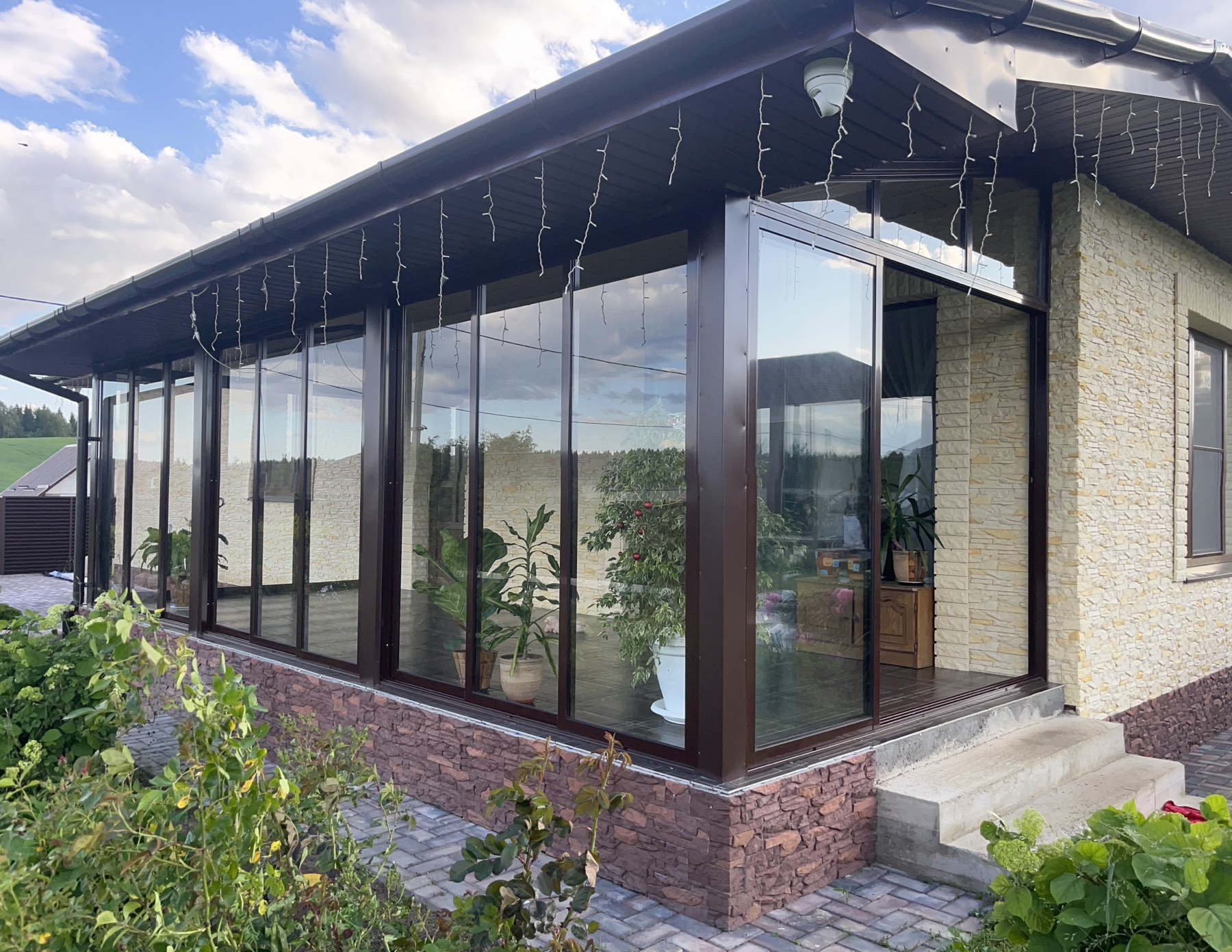 Что может быть приятнее, чем отдых в загородном доме, на уютной веранде, за столиком с чашкой горячего напитка... Дождь, снег, ветер не станут помехой, если вы установите современные окна. К вашим услугам — наша компания. Доверьте работы по остеклению вашего дома нашим специалистам, которые составят проект, изготовят конструкции и установят их профессионально. Мы предлагаем разумные цены на окна для веранды, террасы.